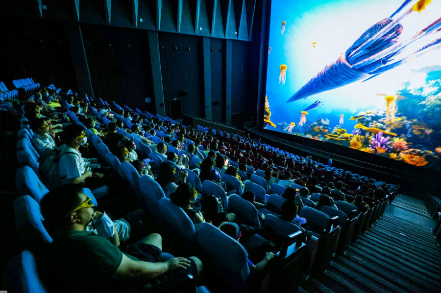 巨幕影院項(xiàng)目《生命之光》以3D巨幕形式講述了從宇宙大爆炸到地球生命誕生的演變過(guò)程。游客們穿行在波瀾壯闊的恐龍時(shí)代,探索地球生物誕生和演化的無(wú)窮奧秘,感受生命的多樣和燦爛。一位帶著兩個(gè)萌娃的家長(zhǎng)觀影后贊不絕口,表示項(xiàng)目非常震撼,而且科普了很多知識(shí),很有教育意義。
